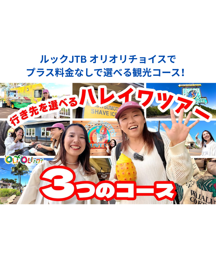 ハレイワ到着前には今話題のパワースポット「ポハク・ラナイ(バランスロック)」を車窓から見学!3つの選べる過ごし方をご用意しました。