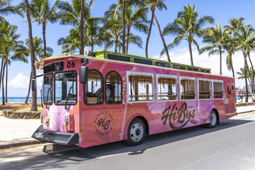 ワイキキ周辺の移動に便利なHiBus ハイバス 巡間トロリーバスは5つのルートに乗り放題…