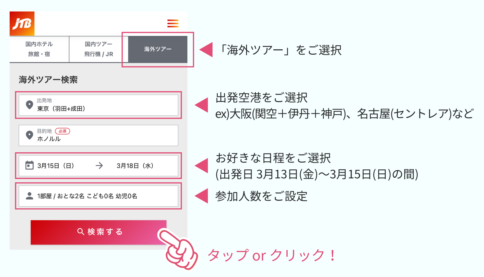 このページでは、ホテル・航空会社を豊富なラインナップから自由に選び、ご自身の旅のスタイルに合わせた滞在プランを作成できるツアーの申し込み手順をご案内します。申込の流れやおすすめポイントをステップごとにわかりやすく解説していますので、初めての方も安心してお申し込みいただけます。