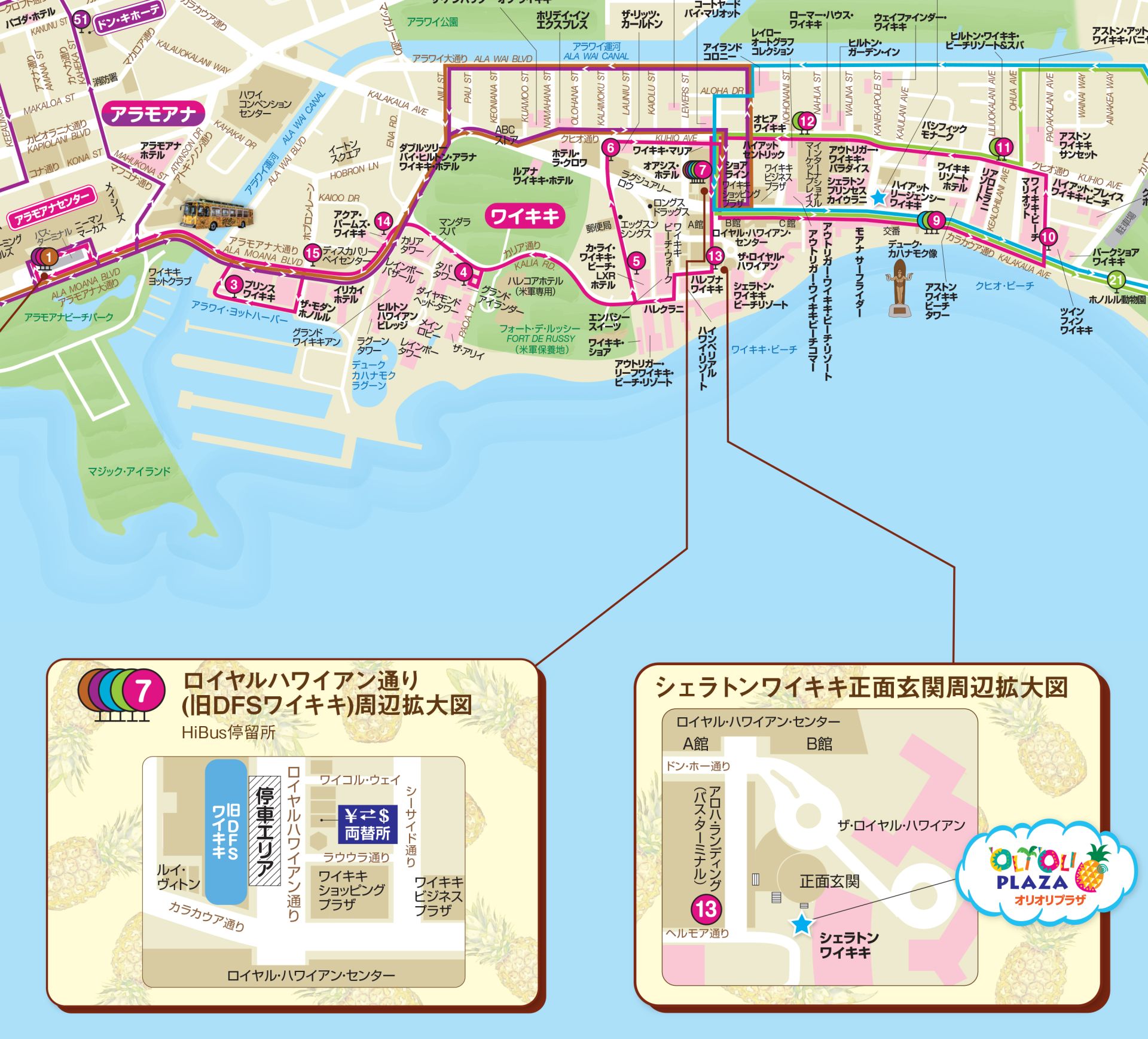 アラモアナセンターからワイキキ各所を廻るルート