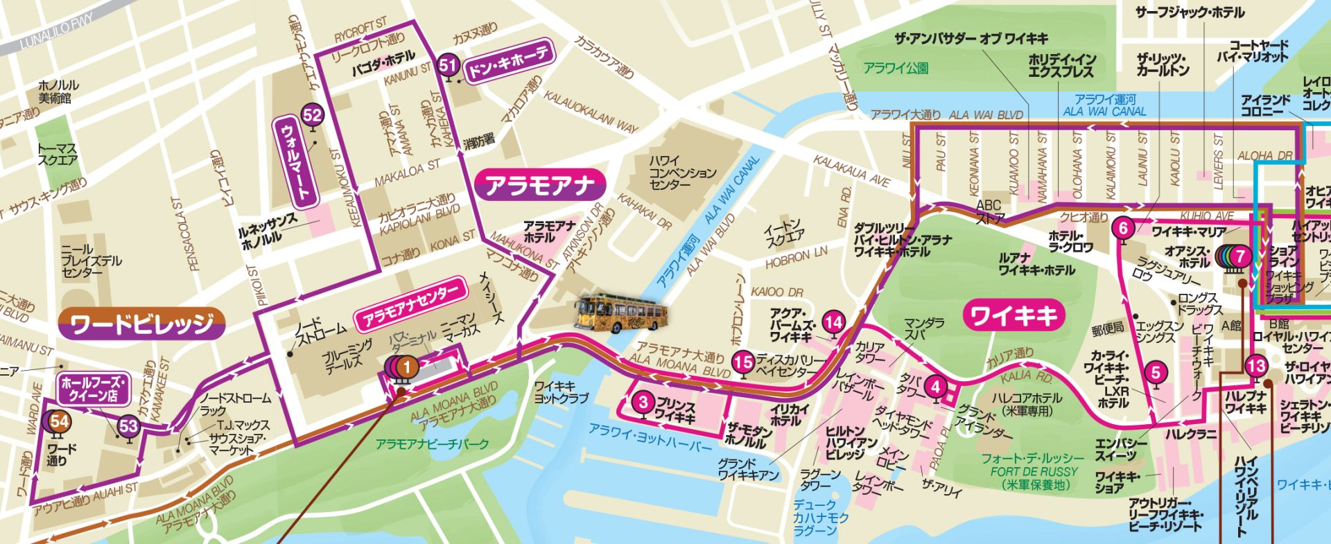 ワイキキのロイヤルハワイアン通り(旧DFSワイキキ)発着。昼過ぎ~夕方にかけて、ローカルショッピングのホットスポット、ドン・キホーテやウォルマート、大人気スーパーマーケットのホールフーズ クイーン店を巡ります。大切な方や自分へのお土産さがしにご活用ください!ワイキキからアラモアナセンターへお出かけの際にもぜひご利用ください。
