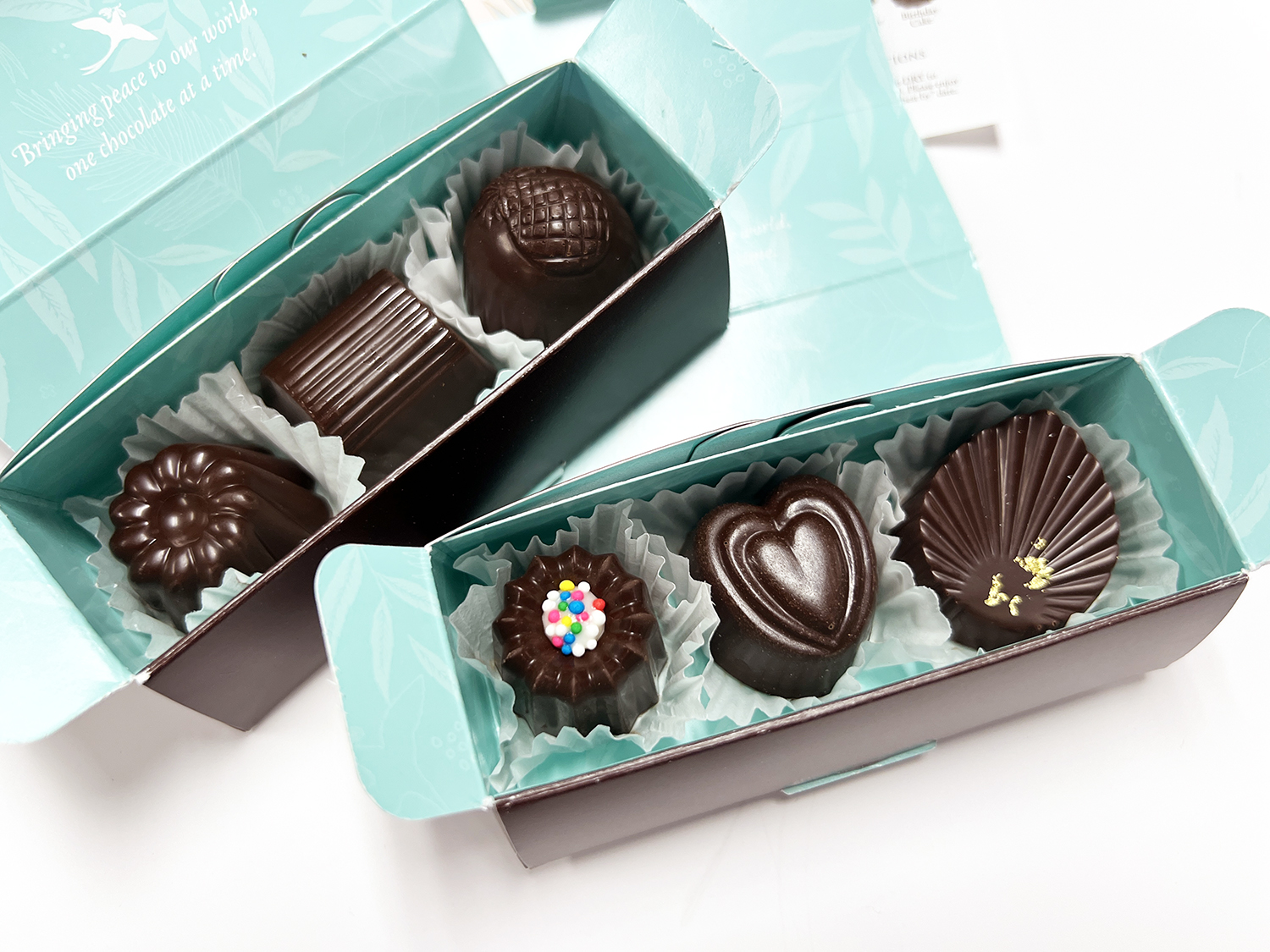 ブランド名「Choco le‘a」ショコレアは、フランス語のchocolat(チョコレート)と、ハワイ語のle‘a(喜び・楽しみ)を掛け合わせたもの。ブランドのミッション Bringing peace to our world, one chocolate at a time. で、チョコレートを通して人々に小さな喜びと平和を届けたい、という思いが込められています。ダークでありながら苦すぎない味わいも特徴で、ヨーロッパとハワイのチョコをブレンドした独自のレシピが多くの人を驚かせています。