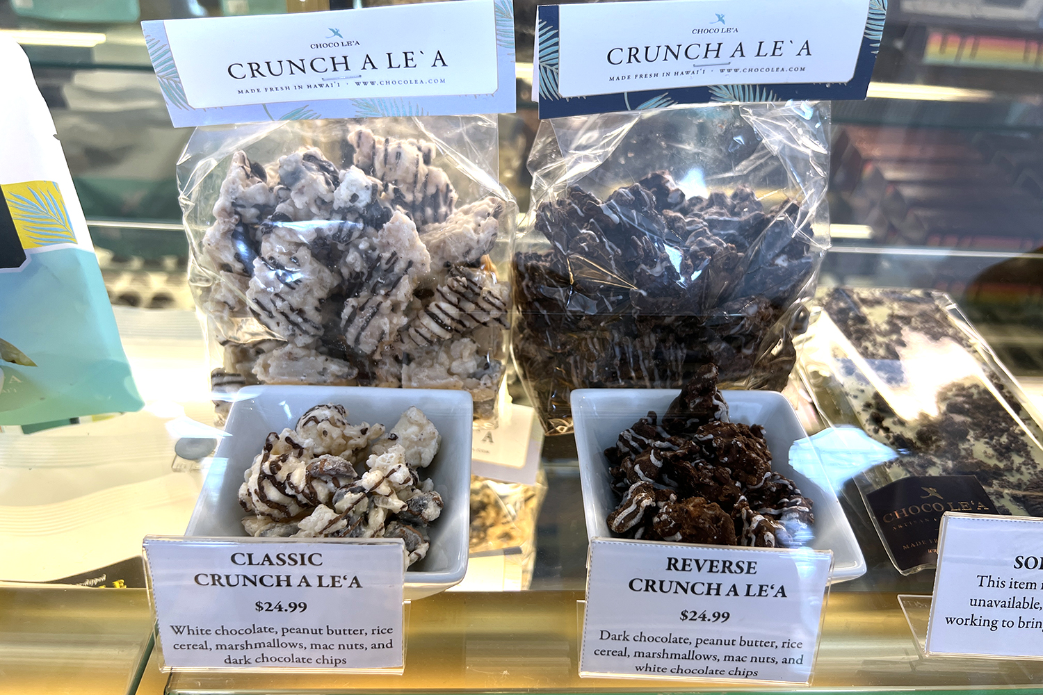 ローカルに絶大な人気を誇るのが、オリジナル菓子「Crunchalea(クランチレア)」。ピーナッツバター、ホワイトチョコ、ダークチョコを組み合わせたリッチな味わいで、ハワイの人々に愛されています。日本人観光客にはまだあまり知られていませんが、一度試すと「次はお土産に」とリピーターになる人が続出しているそうです。