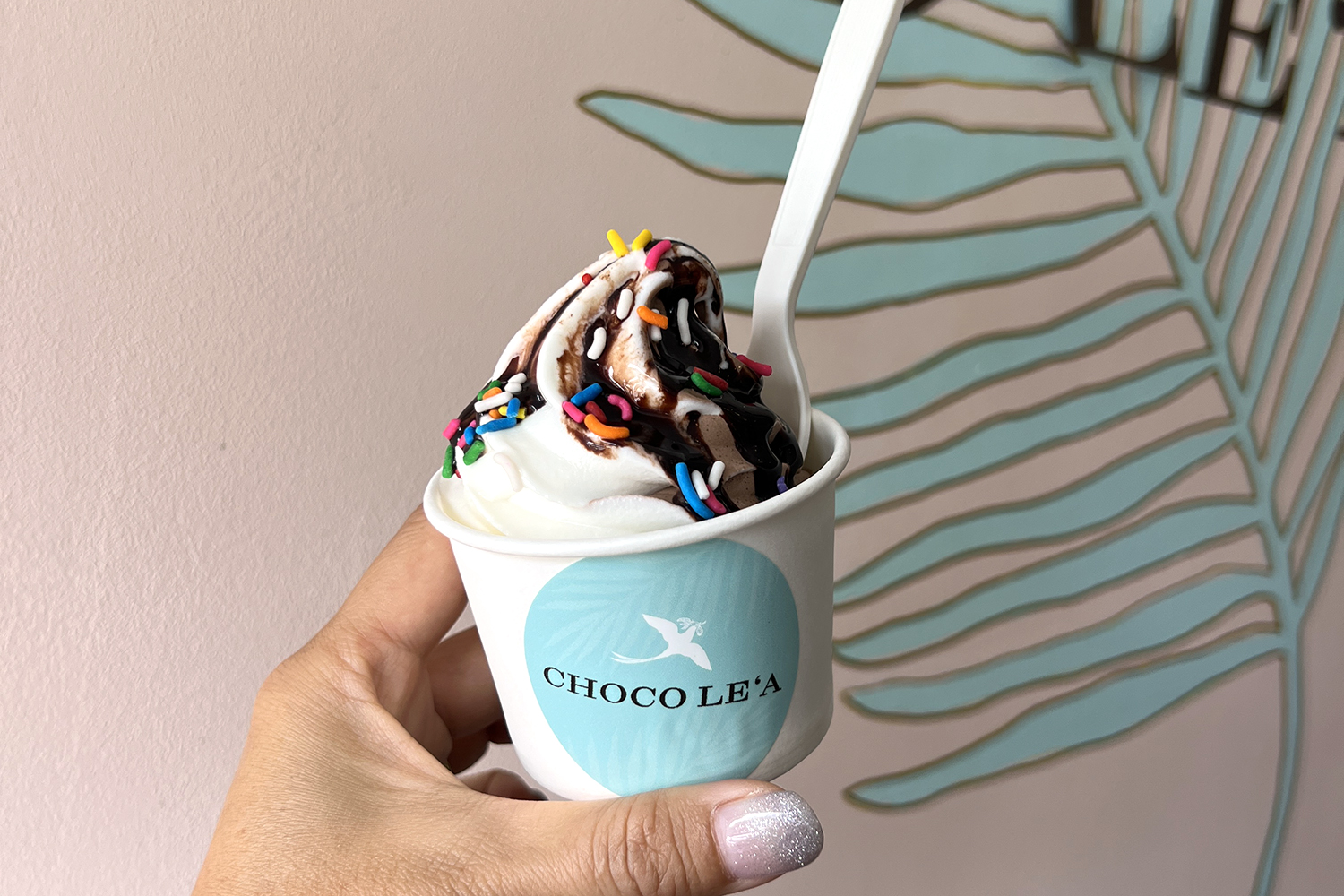 暑い日の休憩にぴったりなのが、濃厚なソフトクリーム。北海道産ミルクパウダーを使用し、日本のソフトクリームのようななめらかさが特徴です。フレーバーはバニラ、チョコ、ミックスの3種類。さらにチョコソースやカラフルなスプリンクル(+$0.50)のトッピングも可能です。手に持ってマノアの緑を背景に写真を撮れば、旅の思い出に彩りを添えてくれます。