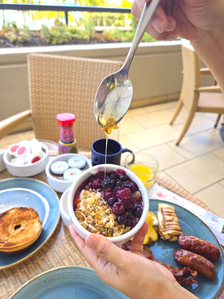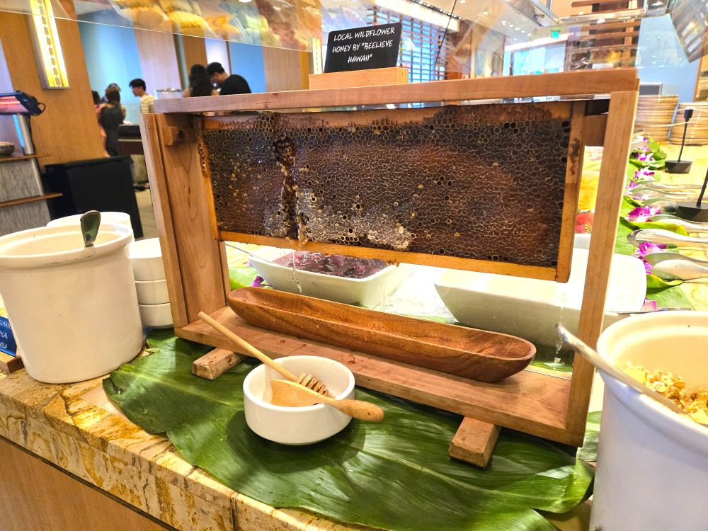 さて、このハイアット リージェンシー ワイキキで育って採れたハチミツは、ホテル内で提供さえるお料理に使われますが、朝食ビュッフェレストラン「ショア」では、ちょっとめずらしい方法でハチミツを提供しているんです!