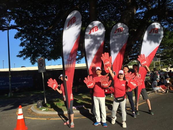 大会当日は、沿道にいる赤いTシャツを着たJTBスタッフが元気いっぱい応援します!見かけたらぜひハイタッチでパワーをもらってください!皆さんの完走を全力でサポートします!