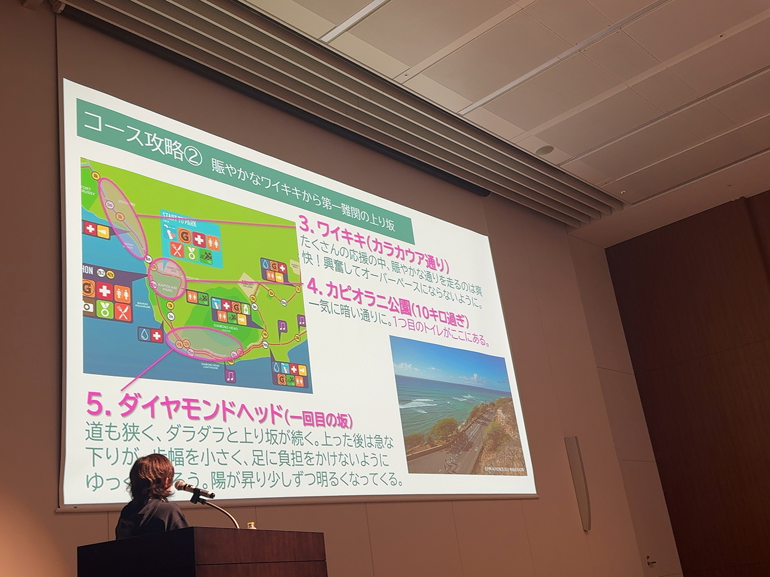 セミナーではまず、「JALホノルルマラソン2025」のコース攻略法について、野口みずきさんよりポイントごとに分かりやすく解説いただきました。