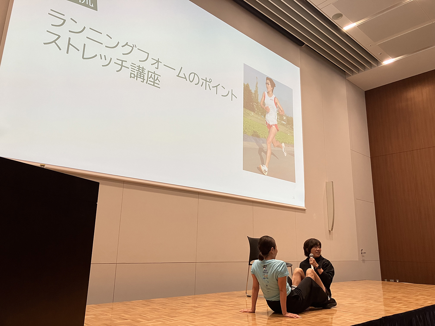 セミナーの後半では、野口さんと一緒に体を動かしながら、ランニングフォームのチェックや効果的なエクササイズ、またトレーニング方法に加えて持ち物やシューズ選びのコツなど、初めて参加される方でも安心できる、実践的なアドバイスをいただきました。