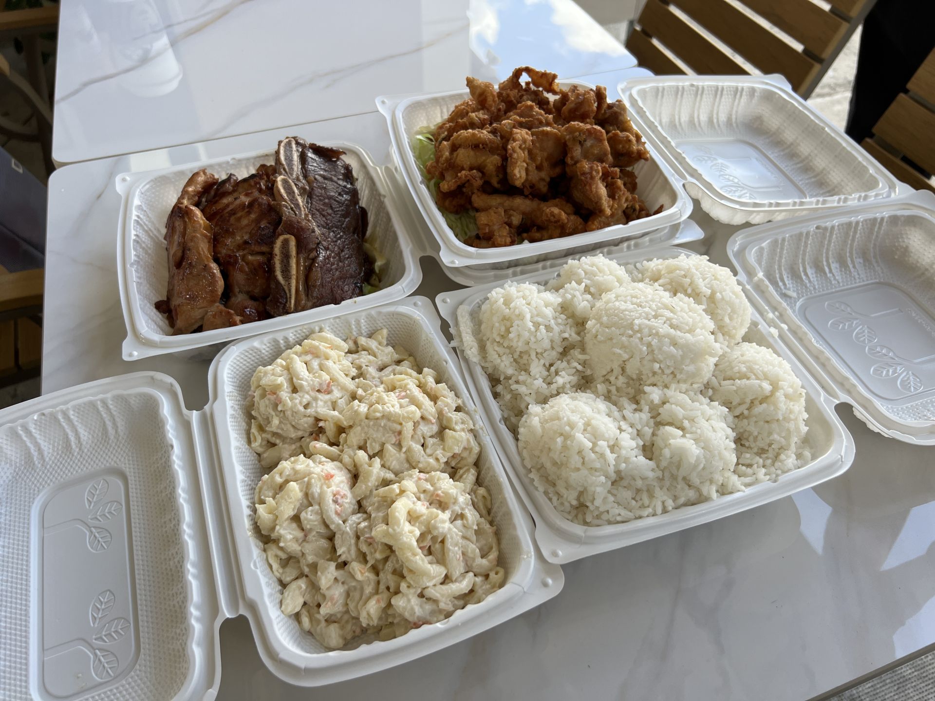 BBQチキン(3ピース)・BBQショートリブ(5ピース)・モチコチキン(10-12ピース)・マックサラダ(4スクープ)・ご飯(7スクープ)