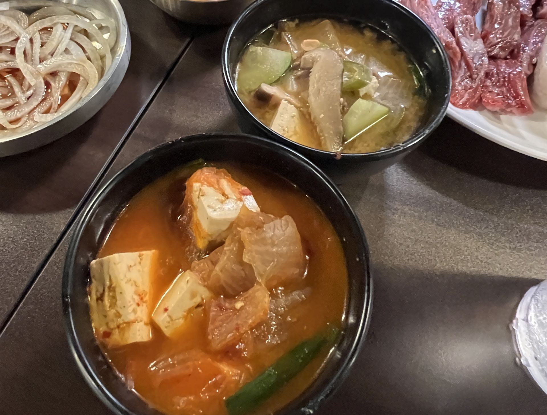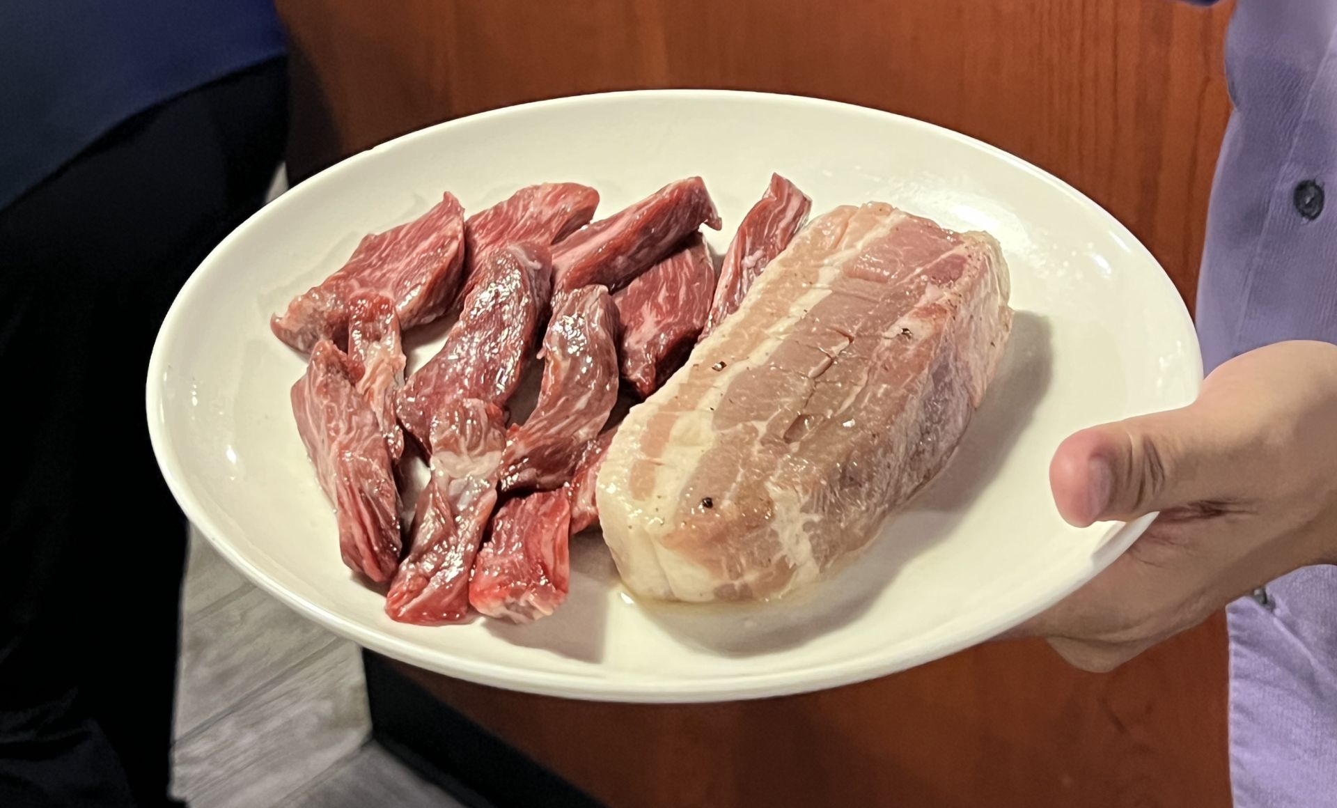 味が濃い目で風味豊かな牛の胸付近のお肉と、油が甘くて柔らかい赤身のお肉🍖