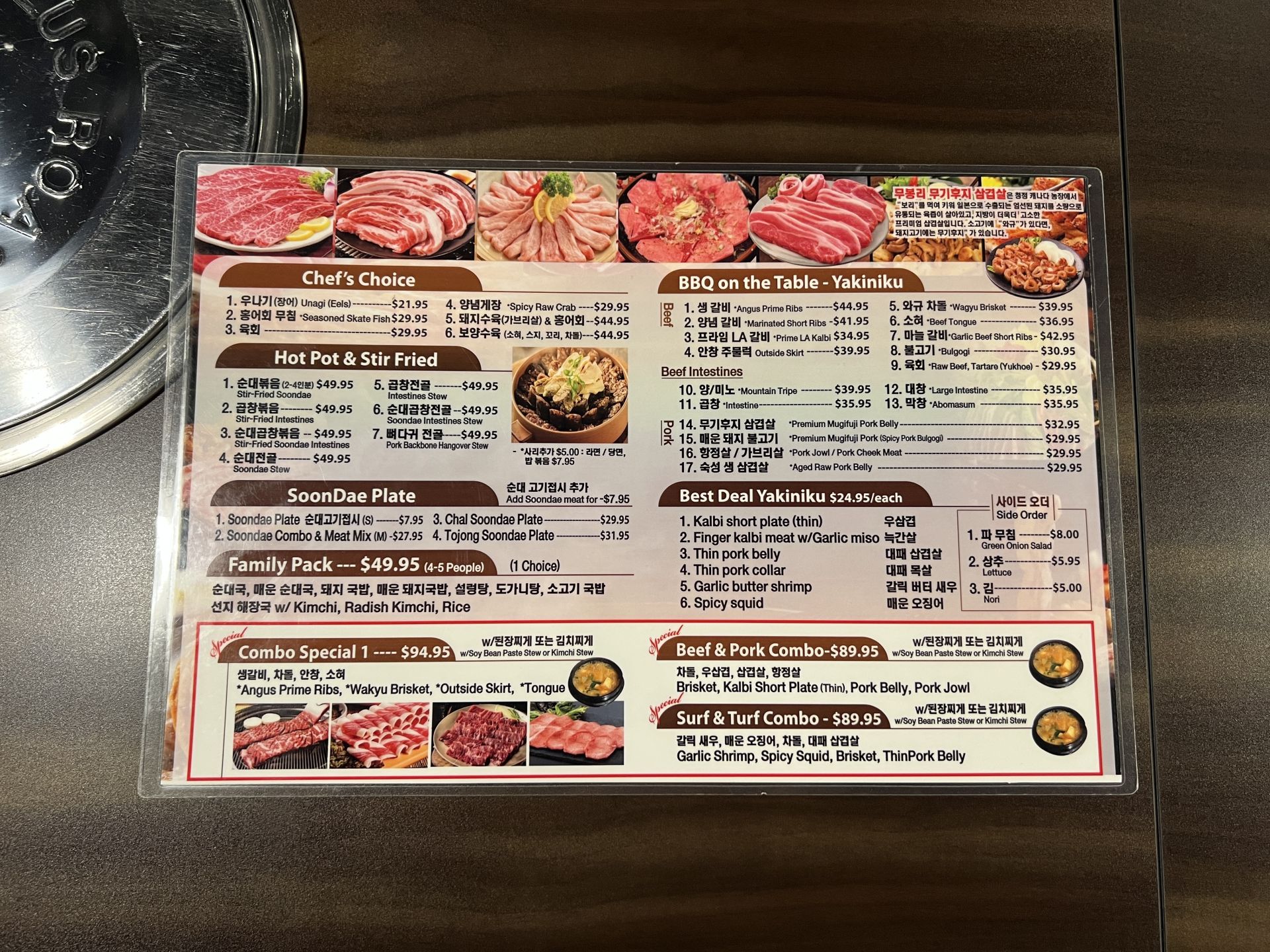 定番の焼肉メニューに加え、小鉢、スープ、サイドディッシュ、デザートまで楽しめる豪華な内容になっています。