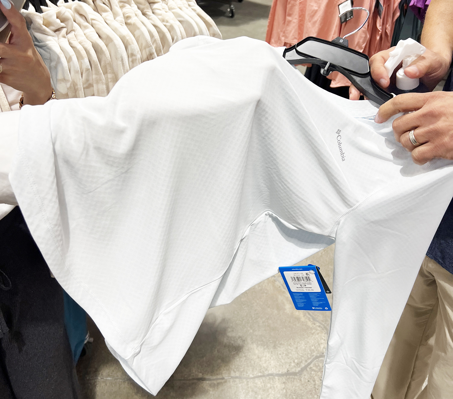 スタッフのMattさんが紹介してくれたのは、旅行やアウトドアシーンで活躍するテクノロジーウェア「軽く・涼しく・汚れにくい」機能シリーズ。