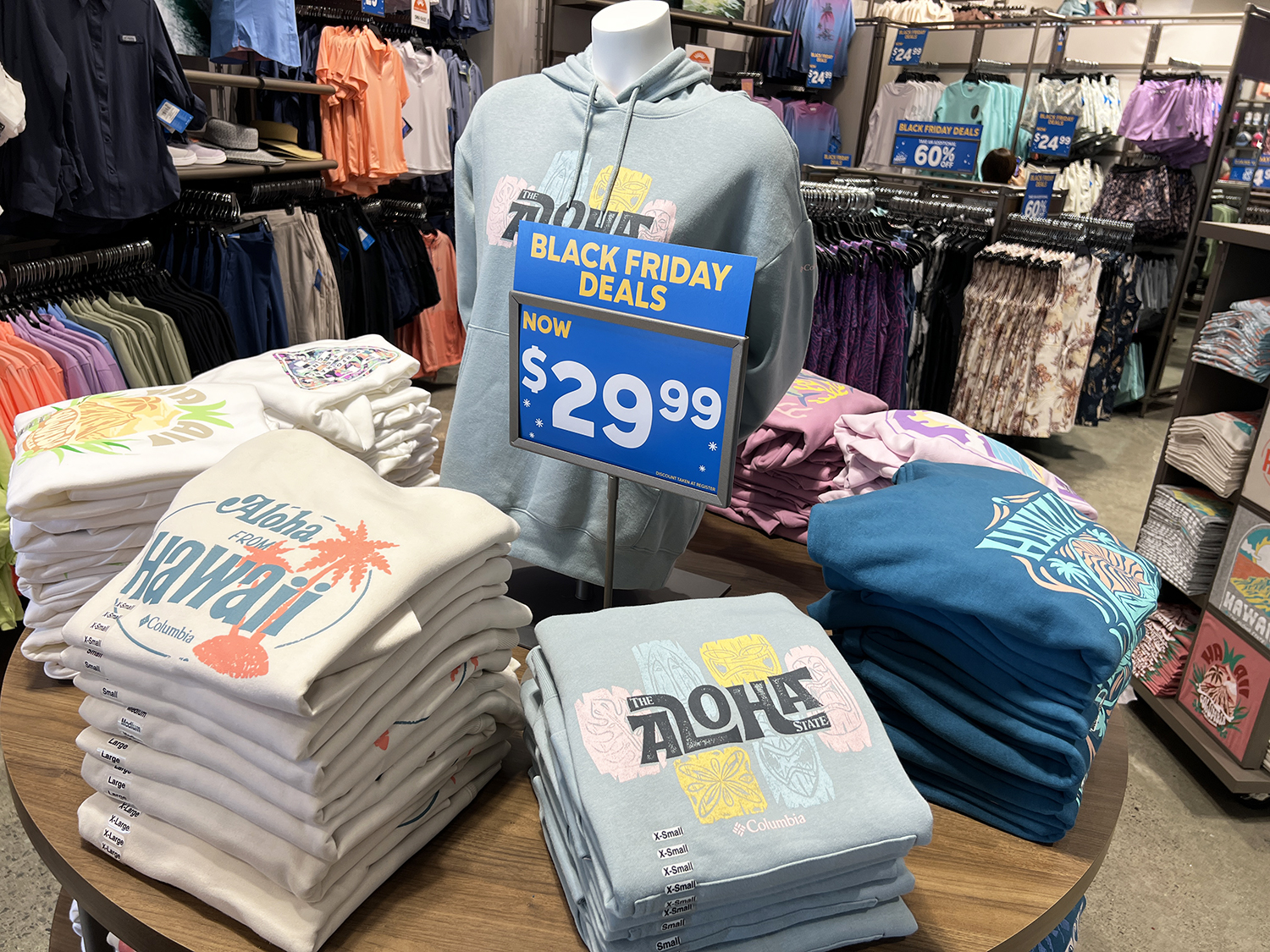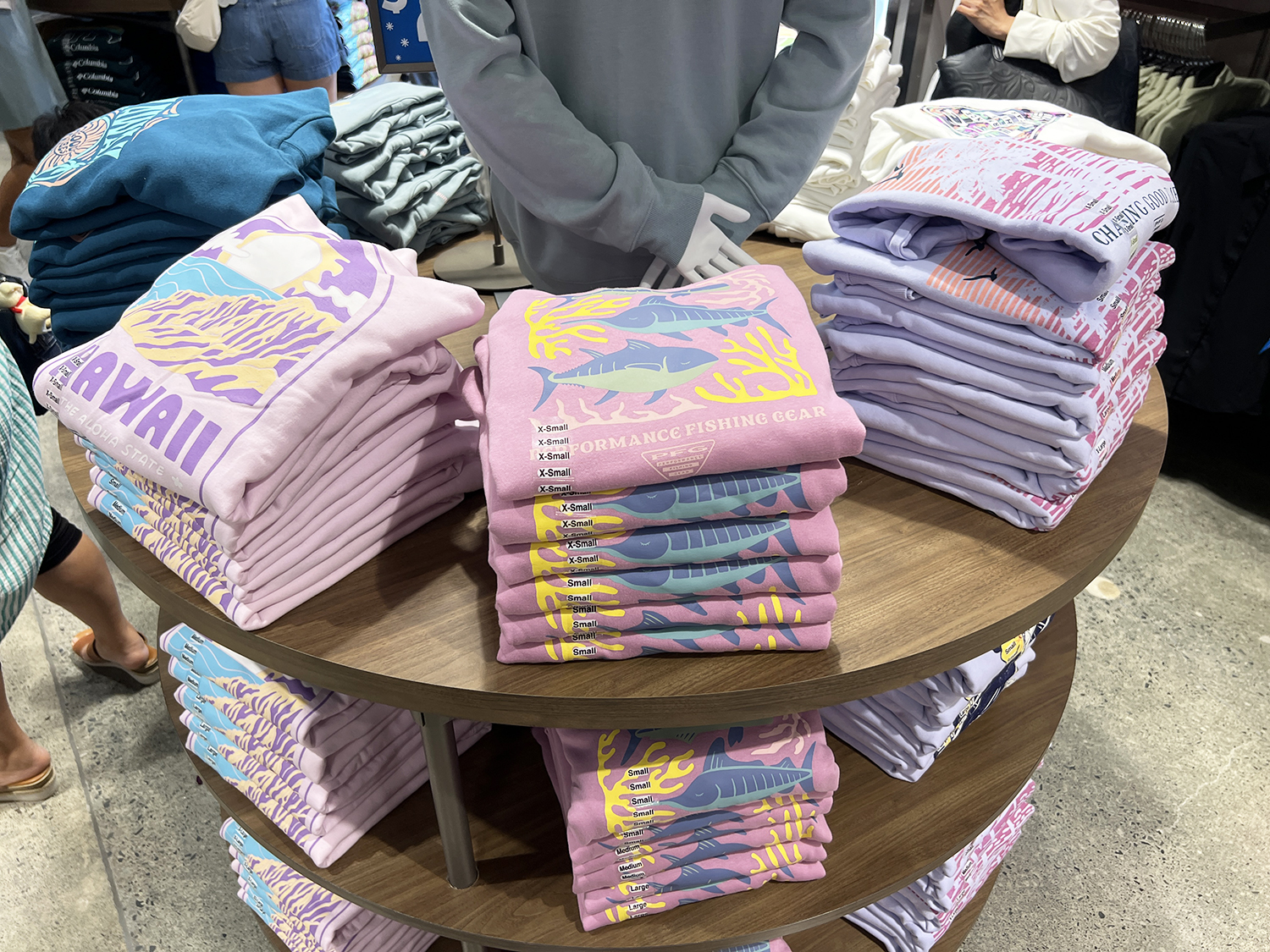 今回のオープンに合わせて、ハワイ限定デザインのTシャツ・パーカー・キャップなどが登場。ALOHAロゴやアイランドモチーフ入りの特別ラインは、ハワイ現地でしか手に入らない人気商品です。
