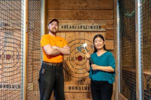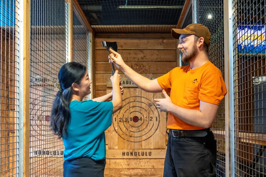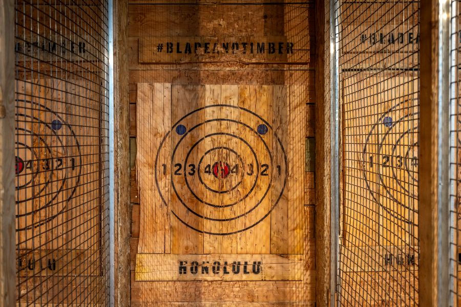 カカアコにある「ブレード&ティンバーホノルル」(Blade & Timber Honolulu)では、本格アックススローイング(斧投げ)体験を楽しめます。