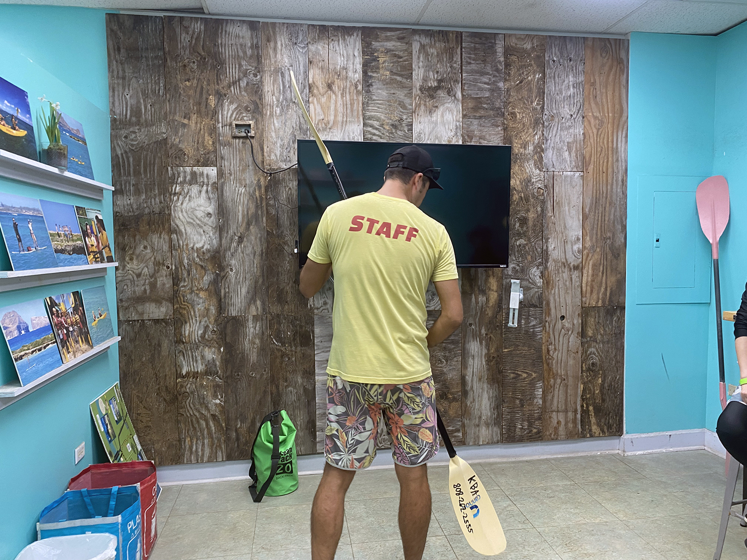 このカヤックツアーを主催するカイルアビーチアドベンチャーズでは、ブリーフィング会場にロッカーと更衣室が用意されているんです!これはありがたい!