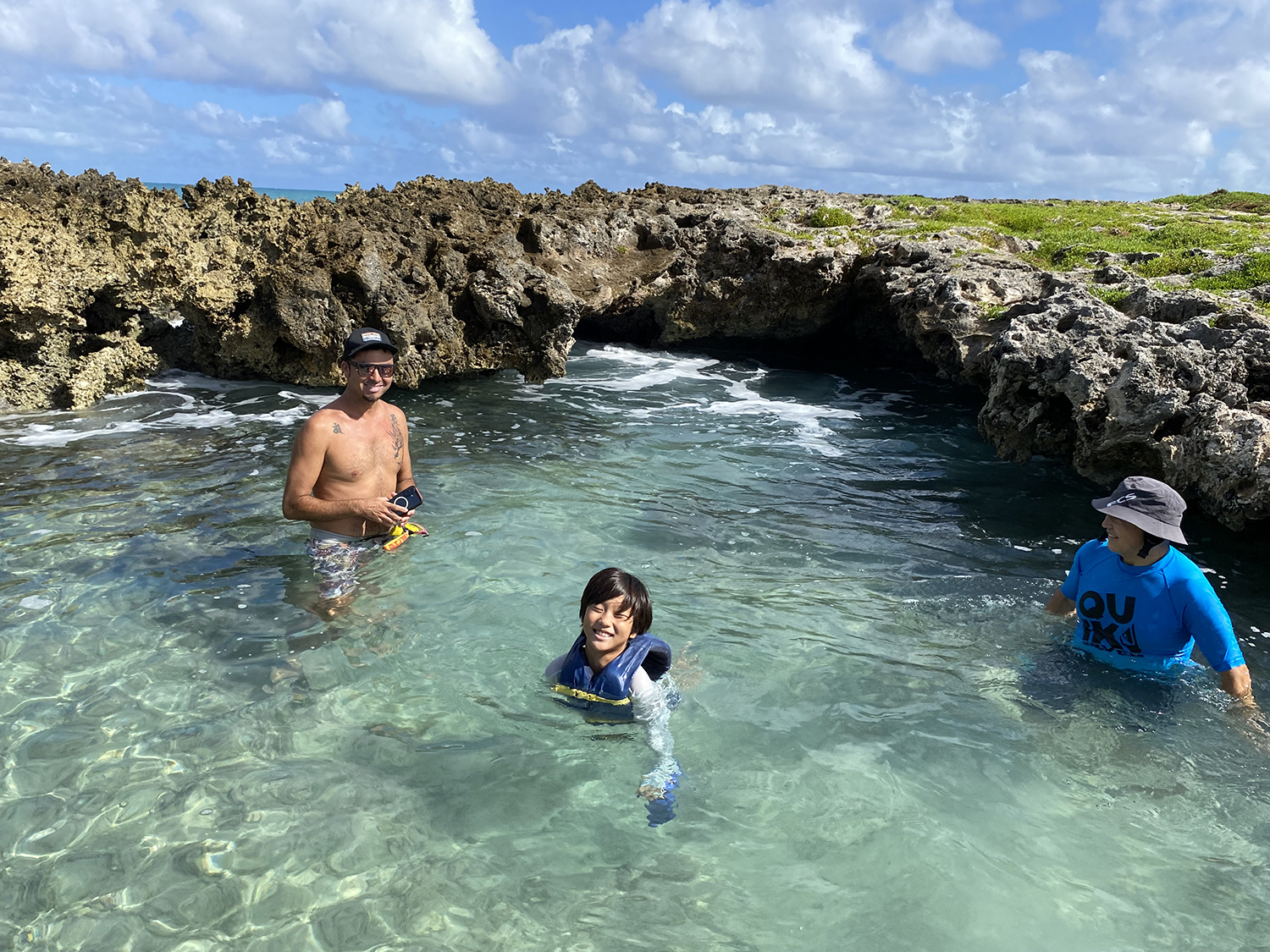 その日の海況を日本語ガイドが見極めながら、家族連れや初心者でも無理なく進めるルートへ案内してくれます。