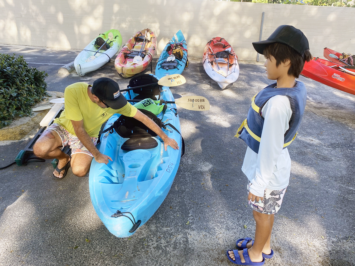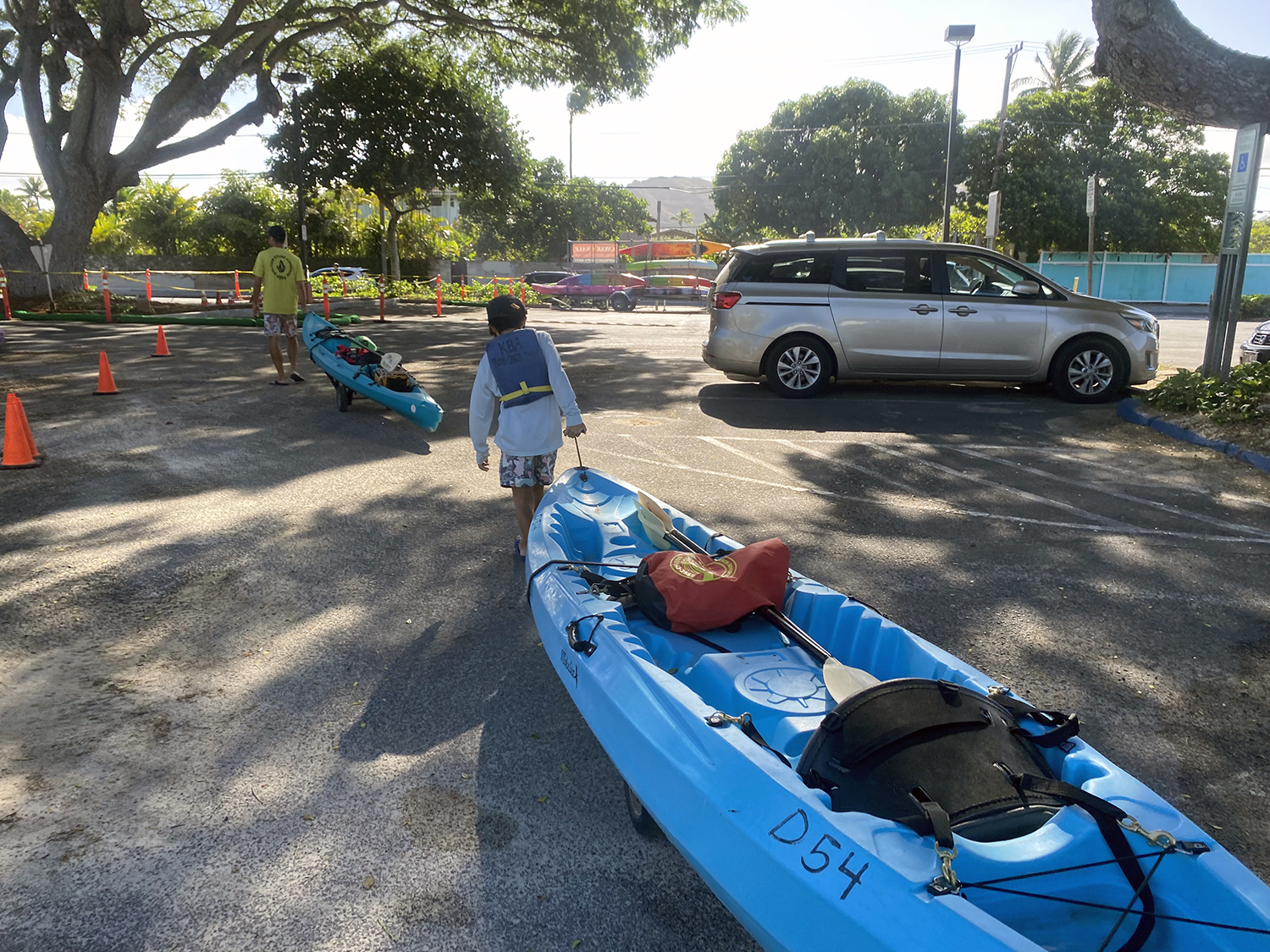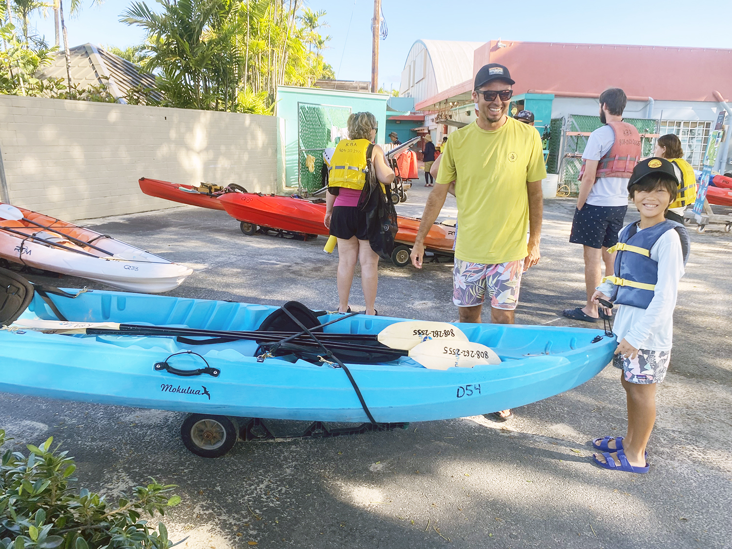 カヤックはショップからビーチまで自分で運ぶとのことで少し心配していたのですが、心配無用でした!
