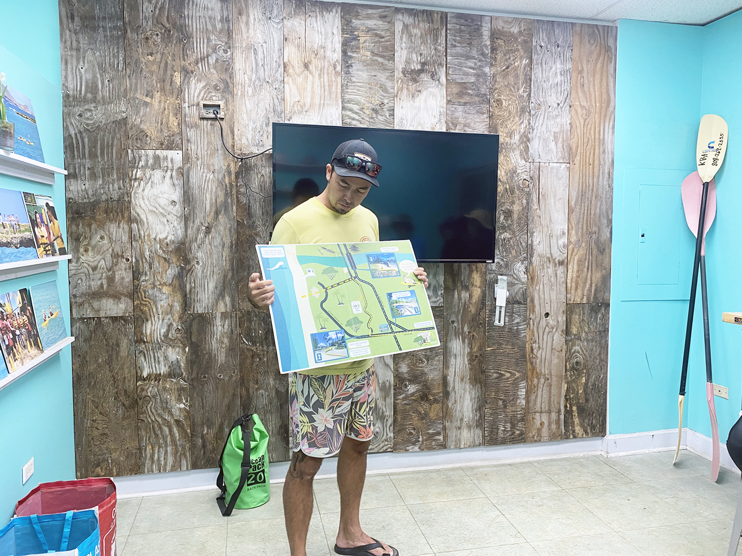 まずは、これから向かうビーチの説明やパドルの使い方などの説明。