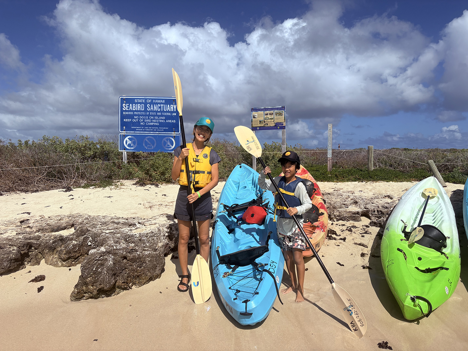 カイルアビーチ沖の野生保護区ポポイア・アイランドまでのカヤッキングに加え、ポポイア・アイランドではガイドから野鳥や自然のお話を聞きながらのミニハイキングと、大人も子供も楽しめるツアーです。
