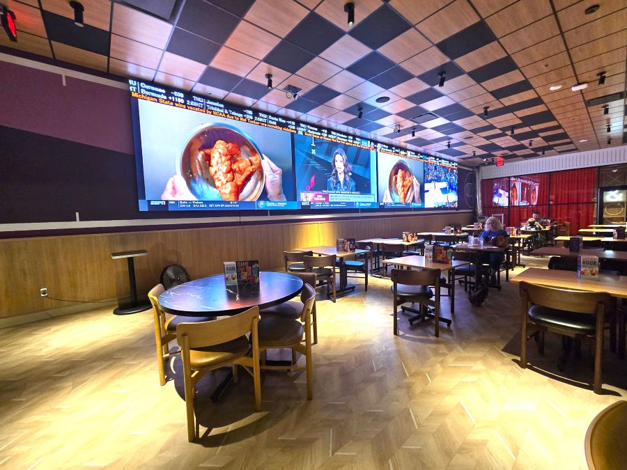 ③巨大スクリーンでスポーツ観戦も可能。レストランには沢山のモニターが設置されており、NBAやNFL、MLBのゲームの様子を楽しめます!