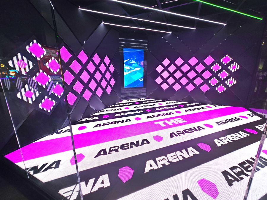 ・壁や床面が光り動く「アリーナ」は記憶力や俊敏性を使う運動系ゲーム。軽いストレッチをしてから遊ぶと安心です。難易度選択ができ、無理せず自分のペースで!