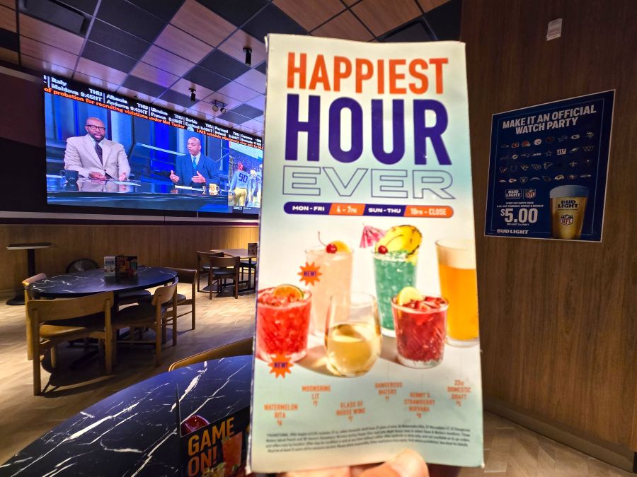 お得なハッピーアワーもありますよ。月~金16:00–19:00、日~木22:00–閉店。ビール$5、ワイン$7で軽く一杯も楽しめます。ゲームをしない飲食利用だけでもOKなので、お得に利用してみてるのをおすすめします!