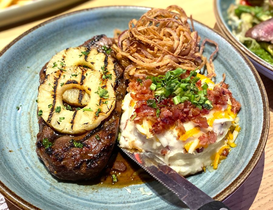 テリヤキ・サーロインはパイナップルの甘みがアクセントで、お肉の焼き加減はもちろん聞いてくれるのでお好みの焼き加減でサーブされます。香ばしくて甘いパイナップル最高です!