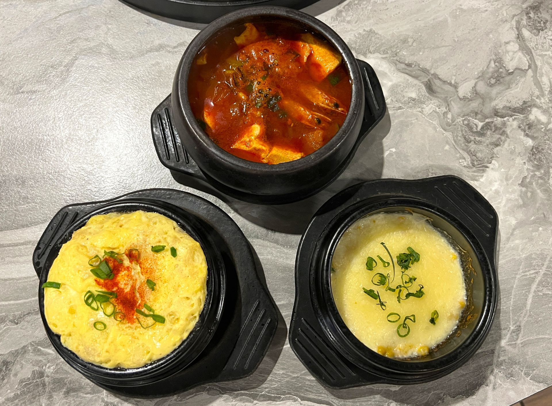 上:スンドゥブチゲ(おぼろ豆腐チゲ)(Soft Tofu Soup)