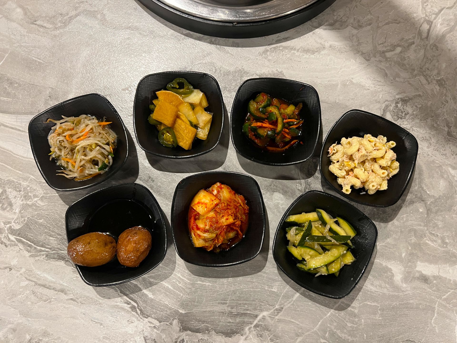 こちらの小鉢7品を含むご飯、唐辛子、ニンニク、サムジャンはすべて無料でおかわり自由で提供されます♪