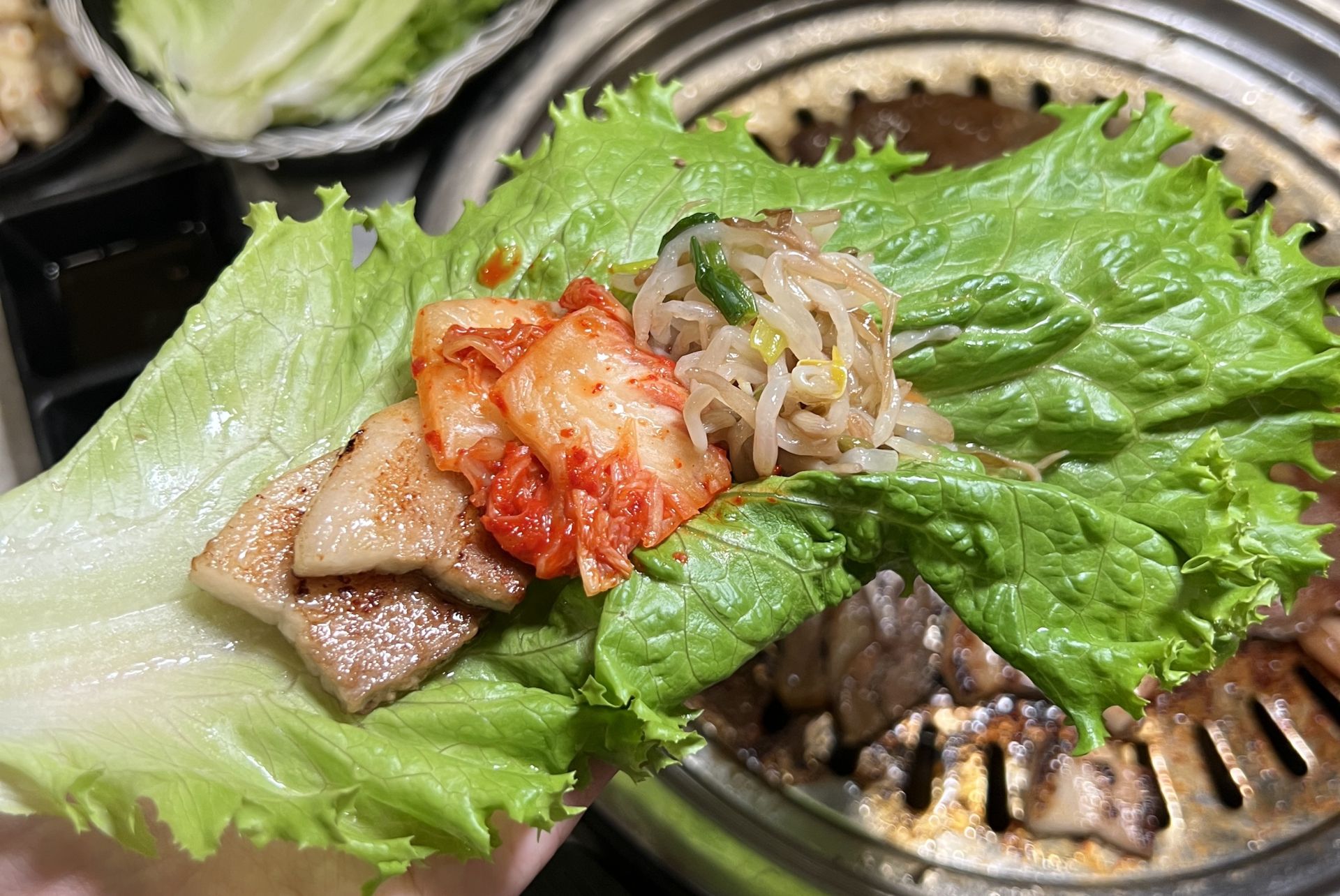 レタスにくるんでお好みのサムギョプサルを作るのも楽しみの1つです🍃