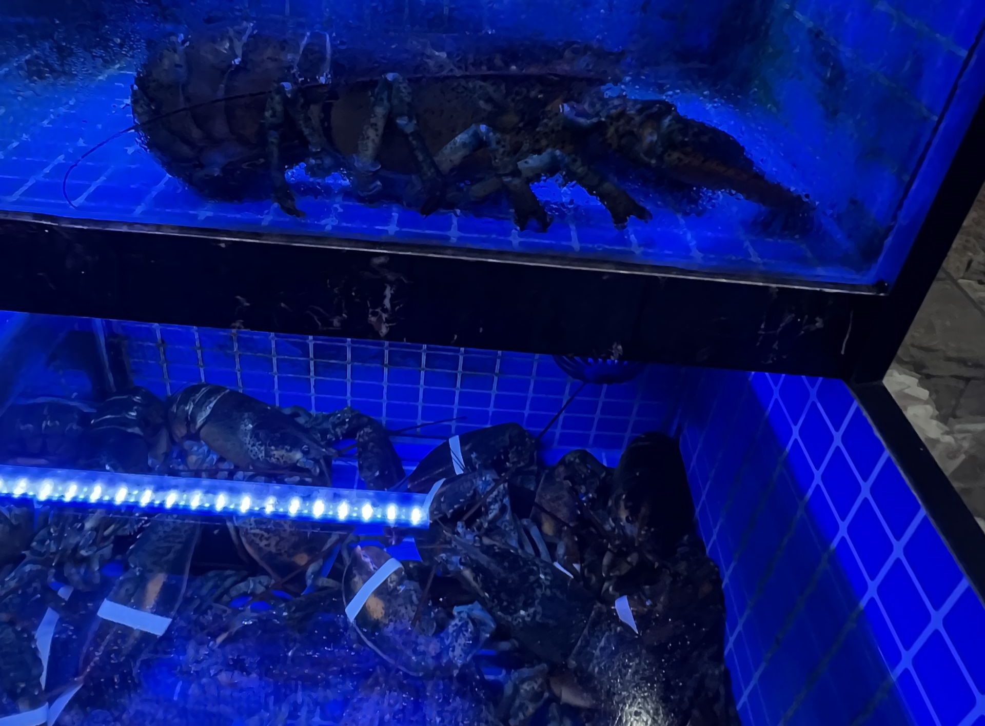 入ってすぐ左手には大きな水槽があり、ロブスターやカニなどの新鮮な海の幸が、毎日漁港から運ばれてきています🦞