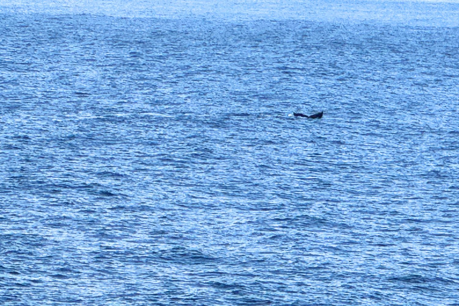 一瞬だけ海面に現れた大きな尾ひれをカメラに収めることができました。