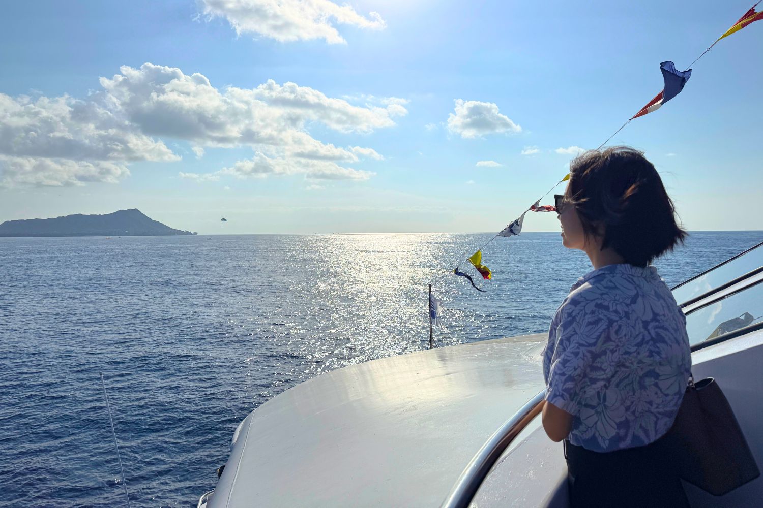 さらに進むと…目の前に現れるダイヤモンドヘッド!海の上、この角度から見る姿は、船に乗った人だけの特別な景色です。