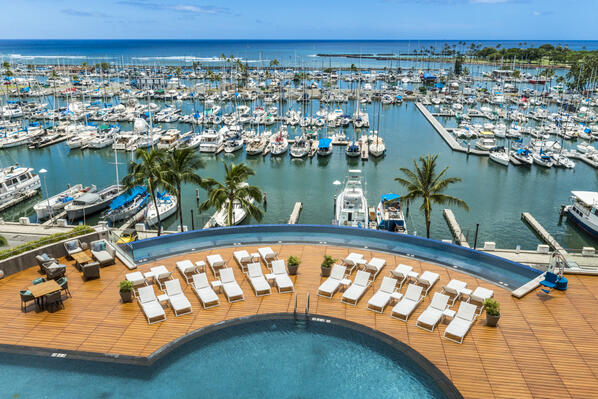 プリンスワイキキは、アラワイボートハーバーの前に建つホテル。