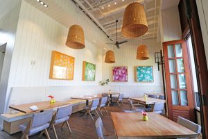 ハワイのモチーフで飾られた2階のメインダイニングは、高い天井に風が吹き抜け、リゾートの心地よさが楽しめます。