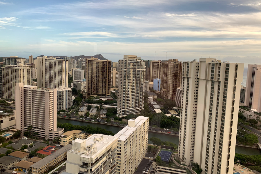 この日はちょっと曇ってたけど、レストランは36階なので眺望がとっても素敵なんです。奥を見てみると、、、ダイヤモンドヘッドが見えます!