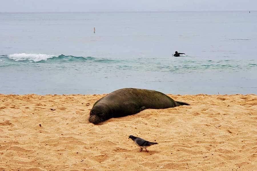 すぐ隣のカイマナビーチは、季節によってハワイアンモンクシール(アザラシ)の親子が日光浴にやってくることでも有名な静かなビーチ。
