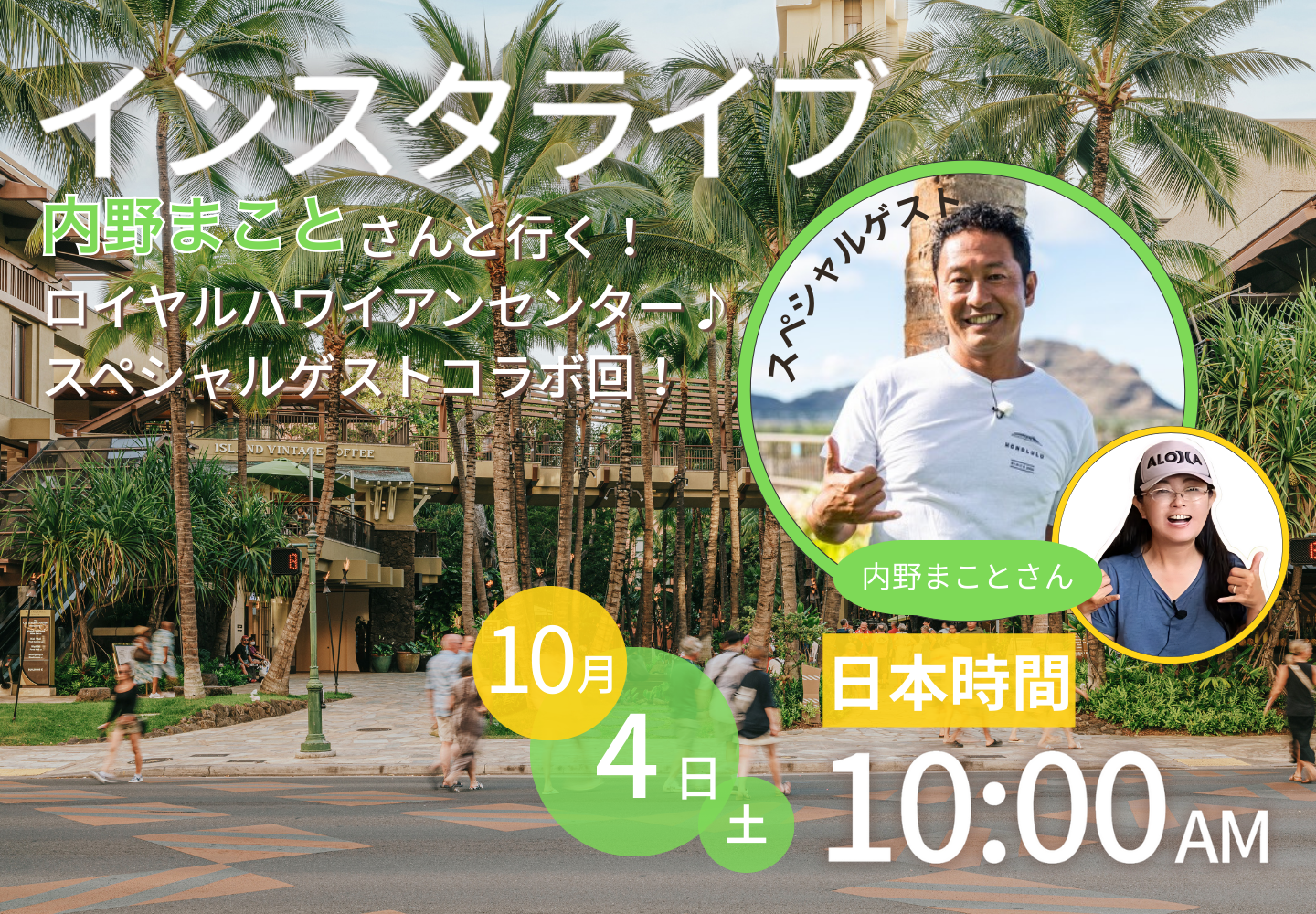 なんと、あの人気番組「ハワイに恋して」のナビゲーター内野まことさんがオリオリハワイインスタライブに出演!とっても楽しいライブになる事間違いなしです!
