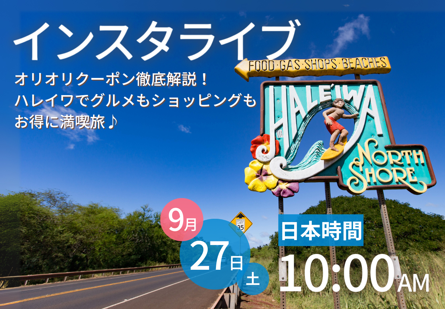 日本時間:2022年9月24日(土)午前10時~ 配信時間:約1時間30分 配信アカウント:オリオリハワイ@oliolihawaii
