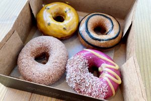 ドーナツは「ホットシングル(上記写真)」「OGグレイズ」「アイランドチョコレート」「ヘイルメリー」、そして週替わりの限定フレーバー4種(下記写真)の合計8種類が揃います。