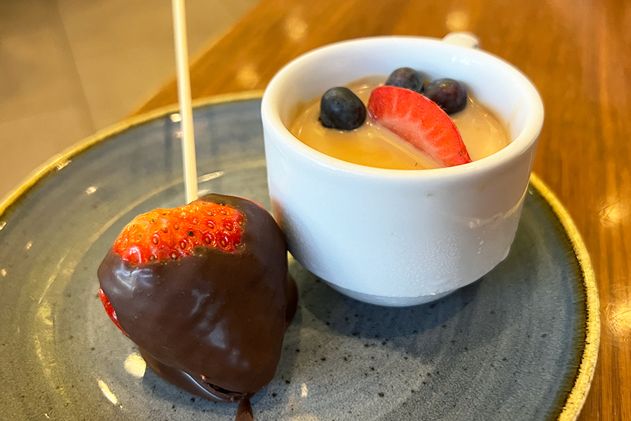 チョコレートファウンテンでは、とろっとまろやかなチョコレートをフルーツに絡めていただきます♪