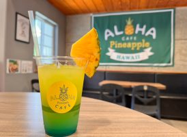 観光者だけではなく、ロコの行列ができるほど人気のカフェなんですよ。パイナップル柄のカラフルな旗が目印です。