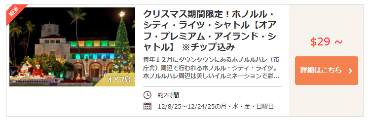 《クリスマス期間限定!ホノルル・シティ・ライツ・シャトル》が登場しました。